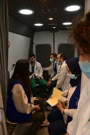 العيادة المتنقلة تحتوي على أحدث المعدّات الطبية لفحص ضغط الدم والسكري بالاضافة الى جهاز تخطيط القلب.