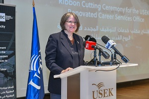 في كلمتها، قالت مديرة الوكالة الأميركية للتنمية الدولية في لبنان جولي ساوثفيلد: “في الوكالة الأميركية للتنمية الدولية في لبنان، نعتقد أن تطوير المركز المهني في جامعة الروح القدس في الكسليك سينتج عنه العديد من الفوائد للطلاب في المستقبل، وبالتالي، للبنان… بفضل اكتساب مهارات الاستعداد الوظيفي والاعتماد على خدمات الوظائف المستحدثة المقدمة، سيتمكن الطلاب من صقل مساراتهم الخاصة في سوق العمل. إن جامعة الروح القدس – الكسليك هي واحدة من بين تسع جامعات في لبنان تستفيد من هذا النوع من الدعم.”
