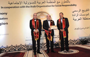 أضاف: “إن المنظمة العربية للمسؤولية الإجتماعية، وهي منظمة عربية مستقلة، أضحت اليوم المرجع العربي المعتمد في مجال تأصيل المعايير والتطبيقات في مجال المسؤولية الإجتماعية، بما فيها من تمايز وتنوع ثقافي ومجتمعي لتحافظ على مخرجات وعوائد ومكتسبات الحقوق الوظيفية والحقوق المجاورة والشفافية والمساوة والتمكن والحكمية الرشيدة والإبتكار والتطوير ورضا المتعاملين، وأيضا يحقق الإزدهار والربح الوفير ويحافظ على المركز المالي للمؤسسات”.