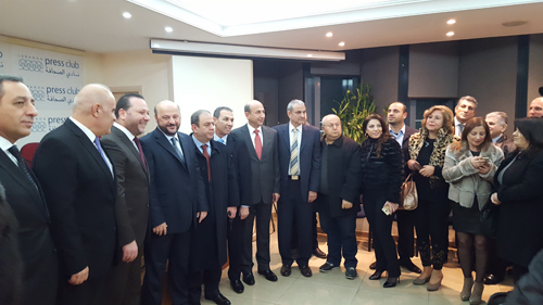 معالي الوزير، اهلا بكم في ناديكم اهلا بكم بين زميلات وزملاء قرروا الوقوف الى جانبكم في الدفاع عن الحريات واصول مهنة الإعلام، ولن نتوانى عن ان نكون معكم في اي لحظة لردع المتطاولين على مهنة حان الوقت ان تستعيد رونقها وقدسيتها.