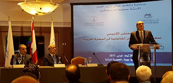 أضاف: “لا يخف على أحد اليوم، أن القطاع المصرفي العالمي بوجه عام والقطاع المصرفي العربي بوجه خاص، يواجه تحديات كبيرة ومتعددة، في ظل بيئة عالمية تتصف بالديناميكية القصوى، إبتداء من تحرير الأسواق المالية الذي تفرضه إتفاقيات منظمة التجارة العالمية والمعايير الدولية سيما معايير لجنة بازل 1و2، مرورا بمكافحة تبييض الأموال وتمويل الإرهاب وتبادل المعلومات التلقائي وصولا الى تحديات التقدم التكنولوجي في مجال العمل المصرفي”.