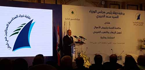 افتتاح منتدى مكافحة الفساد وتبييض الأموال برعاية الحريري