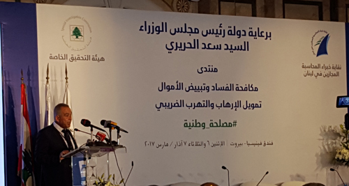 سعياً منها لمواكبة التطورات الأخيرة حول النظام العالمي لمكافحة الفساد والتهرب الضريبي وتبييض الأموال وتمويل الإرهاب، نظمت نقابة خبراء المحاسبة المجازين في لبنان بالتعاون مع هيئة التحقيق الخاصة لدى مصرف لبنان، بتاريخ 6 و7 آذار 2017، منتدى تحت عنوان “منتدى مكافحة الفساد وتبييض الأموال وتمويل الإرهاب والتهرب الضريبي #مصلحة وطنية” برعاية رئيس مجلس الوزراء السيد سعد الحريري، وحضور أكثر من 320 مشارك من الوزراء والنواب والقضاة والفعاليات السياسية والإقتصادية والمصرفية وممثلين عن المصارف ونقابة المحامين ونقابة خبراء المحاسبة المجازين في لبنان.