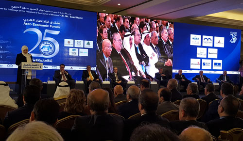 افتتح رئيس مجلس الوزراء سعد الحريري ممثلاً بالنائب بهية الحريري الدورة الـ 25 من “منتدى الاقتصاد العربي” (دورة اليوبيل الفضي) في فندق فينيسيا – بيروت. مع مرور ربع قرن على هذا المنتدى الذي انعقد من دون انقطاع منذ دورته الأولى في العام 1993 وحتى اليوم. واكب خلالها تطورات الاقتصادات العربية واستقطب رؤساء ورؤساء حكومات ووزراء ومحافظي بنوك مركزية وقادة المصارف والشركات من اكثر من 30 دولة.
