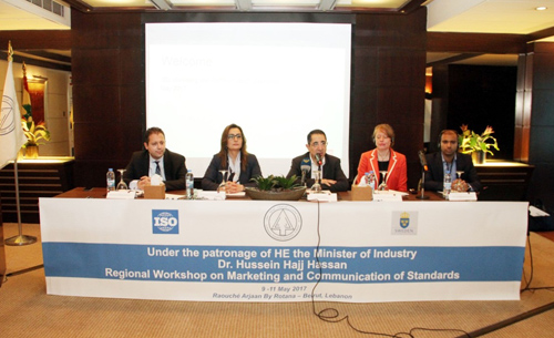 نظّمت مؤسسة المقاييس والمواصفات اللبنانية ( ليبنور ) قبل ظهر اليوم دورة تدريبية اقليمية بالتنسيق مع المنظمة الدولية للتقييس ( ISO ) برعاية وزير الصناعة الدكتور حسين الحاج حسن وحضوره والمديرة العامة للمؤسسة المهندسة لينا درغام، حول كيفية تفعيل دور الاعلام والاعلان والتواصل الاجتماعي بالتسويق للمواصفات والإضاءة على أهميتها في تنمية الاقتصادات الوطنية.