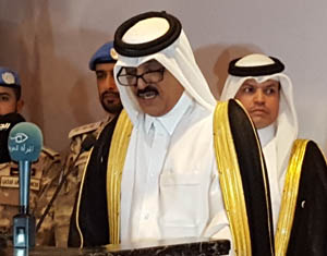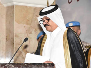 اضاف ” ويطيب لي ان أرفع معكم أسمى آيات التهاني والتبريكات إلى مقام حضرة صاحب السمو الشيخ تميم بن حمد آل ثاني أمير البلاد المفدى”حفظه الله”، وإلى مقام حضرة صاحب السمو الأمير الوالد الشيخ حمد بن خليفة آل ثاني،”حفظه الله” وإلى الشعب القطري الحبيب وإلى جميع المقيمين في قطر، في هذه المناسبة الوطنية، وما تحمله من رمزية تعزز المشاعر والإخلاص والوفاء والفخر والعزة المتمثلة بترسيخ الدولة العصرية الحديثة ذات الطابع العربي العريق” .