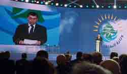 بعد عرض فيلم بعنوان “المسيرة البترولية حتى اليوم: أبرز الإنجازات”. القى أبي خليل كلمة قال فيها: “نلتقي اليوم في اختتام مسار تكلل بالنجاح وفي بداية مسار جديد أسسنا له ليلاقي النجاح الذي يطمح إليه اللبنانيون. فالمسار الذي نختتمه اليوم، تمكنا خلاله من تحقيق الهدفين اللذين وضعناهما لدورة التراخيص الأولى عند إطلاقها: الهدف الأول المحافظة على موارد لبنان الطبيعية على امتداد مياهه البحرية، والهدف الثاني العمل على تحقيق اكتشاف تجاري في مياهنا البحرية وبشكل سريع. وبالفعل، أظهر التقويم الاستراتيجي والمالي والتقني للعرضين المقدمين على الرقعتين 4 و9 أن هذه الدورة حققت الهدفين الموضوعين لها”.