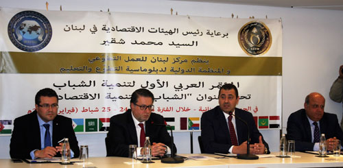 برعاية وحضور رئيس الهيئات الإقتصادية في لبنان السيد محمد شقير ، ومن تنظيم مركز لبنان للعمل التطوّعي، وشراكة المنظمة الدولية لدبلوماسية التطوّع والتعليم، برئاسة الدكتور محمد علي الجنّون. افتتحت فعاليات “المؤتمر العربي الأول لتنمية الشباب” بعنوان “الشباب والتنمية الإقتصادية” وذلك في مقر إتحاد غرف التجارة والصناعة والزراعة في لبنان، بحضور ممثلين عن القوى الأمنية، رؤساء جمعيات ومنظمات محلية وعربية، عدد من الإعلاميين، ولفيف من الشباب المهتم، ومشاركة وفود شبابية من 14 دولة عربية وهي: فلسطين، العراق، سوريا، الاردن، اليمن، السعودية، مصر، المغرب، السودان، الجزائر، تونس، القمر، ليبيا، بالاضافة إلى البلد المضيف لبنان.