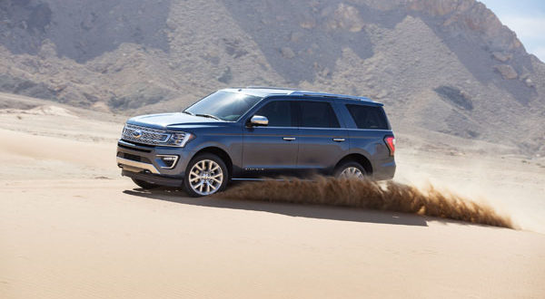 مع طوله الذي يوازي 5.3 متر وعرضه الذي يصل الى 2.1 متر، يعتبَر إكسبيديشن من الجيل الجديد بسهولة المركبة ذات القدرة على خوض الطرقات الصحراوية والتي تساع لثماني ركاب بالغين الأكثر رحابة في السوق. وبفضل محرّك EcoBoost الأفضل في الفئة الذي ينتج قوة 400 حصان* وعزم دوران قدره 650 نيوتن متر*، وناقل الحركة الحصري في الفئة بـ 10 سرعات، ونظام الدفع الرباعي المتطوّر مع علبة لتبديل السرعات ثنائيّة السرعة، فإنّ إكسبيديشن مجهّز لمواجهة أقسى الظروف في طرقات الشرق الأوسط. وتصبح السيطرة على أي سطح سهلة بقدر تحريك قرص – أكان ذاك السطح رمالاً غير ثابتة أو طريقاً معبّدة – بفضل نظام القيادة بحسب التضاريس TMS.”