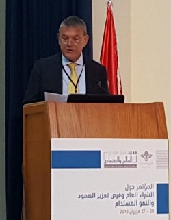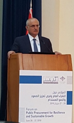 وتحدث سيبير فوتوفات ممثلاً المدير الاقليمي لمنطقة الشرق الأوسط في البنك الدولي ساروج كومارجا، فلاحظ أن “العالم يشهد ضغوطاً متزايدة تتمثل في تدفقات المهاجرين وتزايد العنف (…) في حين أن ثمة شكاً في قدرة الحكومات على مواجهة هذه الضغوط بفاعلية، مما أدى إلى تراجع ثقة المواطنين بها”. وشدد على ضرورة “أن تعمل الحكومات لتمتين العقد الاجتماعي بينها وبين المواطنين لزيادة الثقة”. واشار إلى أن “البنك الدولي يعمل مع الحكومات لتحسين الشراء العام الإلكتروني ضمن ما يعرف الحكومة الإلترونية”. ولاحظ أن “لدى لبنان قدرات مهنية وعلمية تجعل منه بلداً جائباً، لكن التشريعات المتعلقة بالشراء العام فيه هي الأقدم في المنطقة إن لم يكن في العالم، وهي تالياً غير كافية وتجاوزها الزمن، ولا تلائم متطلبات العصر”. وعدّدَ منافع تحديث قوانين الشراء العام، ومن بينها توفير الشفافية والعدالة والفاعلية والقابلية للمحاسبة، إضافة إلى كونها “تمهّد الطريق للاستداامة والحدّ من الفساد وتعزيز قدرة لبنان على جذب التمويل ومشاركة القطتاع الخاص”.