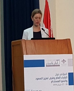 ورأت نائبة رئيسة بعثة الإتحاد الأوروبي في لبنان جوليا كوش دو بيولييه أن توقيت المؤتمر “مناسب جداً إذ يأتي بعد ثلاثة أشهر من مؤتمر سيدر الذي قدّمت فيه الحكومة اللبنانية خطة مشاريع استثمارية شاملة تشمل قطاعات عدّة وبرنامجاً إصلاحياً طموحاً”. ورأت أن هذا البرنامج الإستثماري “مهم جداً لرفاه الشعب اللبناني ولتعزيز تنافسية الاقتصاد اللبناني”. واعتبرت أن “تنفيذ خطة الحكومة يتيح إصلاح إدارة عدد من القطاعات وإدارة الشراء العام”، مشددة على أنها “فرصة مهمة للغاية للبنان”. وأضافت: “في ظل ارتفاع نسبة الدين العام إلى الناتج المحلي إلى 150 في المئة، قد تشكل الخطة الإستثمارية خطراً كبيراً إذا تمت إدارتها بطريقة سيئة، وهذا ما يعزز أهمية الشراء العام السليم والحوكمة والشفافية ومكافحة الفساد في تحقيق الفائدة القصوى للبنان من المشاريع التي سينفذها”. وأملت “أن يكون تحديث الشراء العام من أهم أولويات الحكومة الجديدة في الأشهر المقبلة”، وأن تعتمد في هذا المجال “مقاربة مدروسة تقوم على الإصلاح خطوةً خطوة”. واشارت إلى أن هذا الأمر “يتطلّب احترام استقلالية الهيئات الرقابة الموجودة حالياً كديوان المحاسبة والتفتيش المركزي للتأكد من تنفيذ القوانين الحالية ومنها تلك التي أقرت حديثاً، كقانوني الوصول إلى المعلومات ومكافحة غسل الأموال، ومن ثم على الحكومة الجديدة توضيح الصلاحيات والتحضير جيدا للإنتقال إلى الهيئات والإجراءات الجديدة وفق المعايير الحديثة”.