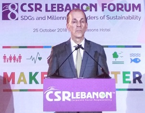 وأشار “أن ما يعزّز من أهمّية المنتدى هو تبنّيه لعناوين جديدة كلّ عام تواكب التطوّرات الحديثة في قضايا المسؤولية الإجتماعية للشركات. وينعكس هذا بالطبع على عنوان المنتدى هذا العام “SDGs and Millennials: Leaders of Sustainability”، الذي يتمحور حول جيل الألفية الجديدة ودوره الرئيسي في دعم أهداف التنمية المُستدامة. فالمعروف عن جيل الألفية الجديدة بأنه جيل ملمّ بتكنولوجيا المعلومات والحاسب الآلي، ولكنه أيضاً جيل واعٍ لقضايا التنمية الإجتماعية والإنسانية والبيئية ولديه القدرات الفكرية والعملية لتحقيق هذه الأهداف وبالتالي توفير مستقبل مشرق لهم وحياة هنيئة لسواهم في لبنان والعالم”.