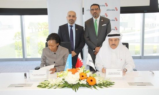 اتفقت مجموعة البركة المصرفية (ABG) وبرنامج الأمم المتحدة للبيئة (UNEP) على التعاون بينهما من أجل زيادة التمويل الخاص للمشاريع البيئية في البلدان المشمولة بشبكة مجموعة البركة المصرفية. وتم التوقيع على مذكرة تفاهم بين الطرفين بتاريخ 20 مايو 2019 من أجل إضفاء الطابع الرسمي على هذه الشراكة الاستراتيجية، حيث وقعها بالنيابة عن مجموعة البركة المصرفية الرئيس التنفيذي الأستاذ عدنان أحمد يوسف وبالنيابة عن برنامج الأمم المتحدة للبيئة المدير التنفيذي للبرنامج السيدة جويس مسويا .