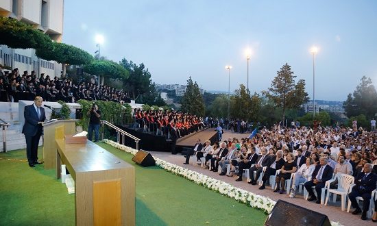 وتمنّى في ختام كلمته “أن تكون الجامعة اليسوعيّة في فكر المتخرّجين والمتخرّجات حبّ السؤال والتساؤل حول معنى الحياة والمهنة والانتماء إلى الوطن وإلى العائلة والرغبة في الاطّلاع والتثقيف المستمرّ وأنّ لبنان إنّما يحيا ويعلو إسمه عندما ينجح أبناؤه المثقّفين من طينة متخرّجي اليسوعيّة”.