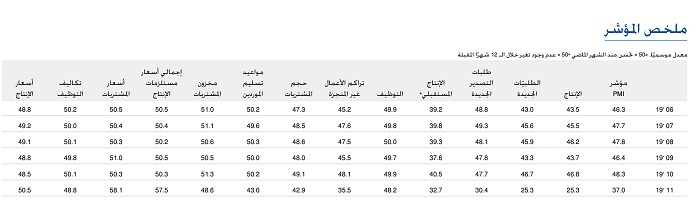 “وصل مؤشر PMI في شهر تشرين الثاني إلى أدنى مستوى له منذ إنشائه في أيّار 2013 بسبب حالة الجمود السياسي والاحتجاجات الشعبية المستمرّة منذ 17 تشرين الأول. فقد تراجع مستوى الإنتاج والطلبيات الجديدة حيث سجّل 25 نقطة، مع العلم بأنَّ الحدّ الفاصل بين الانكماش والتوسّع هو 50 نقطة في حين سجّلت طلبيات التصدير الجديدة انخفاضًا وبقيت عند 30 نقطة. ورافق تدنّي مستويات الإنتاج والطلب ارتفاعا ملحوظا في أسعار المدخلات والانتاج بسبب ظهور سوق موازية لصرف العملات جراء الضوابط المالية الرقابية التي اتخذتها المصارف. تراوح سعر صرف الليرة اللبنانية بين %25 إلى %35 أقلّ ممّا هو عليه في الأسواق، بحيث اضطر المستوردون لأن يلجأوا إلى هذه السوق الموازية للحصول على العملة الأجنبية الضرورية لحركة الاستيراد. وبات تشكيل حكومة جديدة في أقرب وقت ممكن أمرا ضروريا من أجل المباشرة في معالجة الوضع الراهن عن طريق اتخاذ سلسلة من التدابير الهيكلية الصارمة على الأمد القصير.”