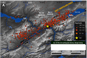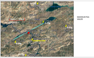 وكتب إرديك في مقال عن زلزال سيفريس أن خبراء الزلازل “قدّروا ذروة تسارع الجاذبية الافقي (Peak Ground Acceleration – PGA) لهذا الزلزال في موقع السدّ بنحو 22%. كذلك اشار الخبراء الى ان فترة المعاودة (return period) لمثل هذا الزلزال تتراوح ما بين 100 و150 سنة، وهم يدركون أيضًا أن هذا الفالق (المعروف بإسم قسم هازار- سينيك من فالق منطقة شرق الاناضول)، هو فالق ناشط بمعدل انزلاق (slip rate) يبلغ سنتيمترًا واحدًا في السنة (إجمالي انزلاق الفالق المرتبط بهذا الزلزال بلغ حوالي المتر)، وأن الزلزال الكبير الأخير على هذا الفالق نفسه كان في العام 1875”.