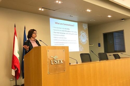 بدايةً، قدّمت الدكتورة مطر لمحة تاريخية عن فيروس كورونا، “هذا الفيروس التاجي الشكل الذي ظهر أولاً في آسيا عام 2003، ليعود عام 2012 ليظهر في المملكة العربية السعودية حاصداً مئات الوفيات. هذا ويبقى مصدر هذا الفيروس غير محدد، فقد يكون الحيوانات، مثل الوطواط والجمل… وينتقل هذا الفيروس من خلال “التنفس (النفس)، العطس (اللعاب) أو الاحتكاك المباشر أو غير المباشر مع المصاب. وتشير آخر الإحصاءات إلى تفشي هذا الفيروس في 30 بلد حول العالم حيث قارب عدد المصابين 77 ألفاً والوفيات حوالى 2300، أكثرها في الصين، وبلغت نسبة وفيات 2.9%”.
