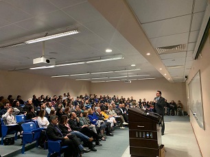 زمكحل تحدث امام حشد من اساتذة وطلاب (LAU) يتقدمهم رئيس الجامعة الدكتور جوزف جبرا ومساعد نائب الرئيس لشؤون الخريجين عبدالله الخال، وقدم له كل من المديرة المساعدة في مكتب الخريجين غادة ماجد والدكتور سعيد اللادقي الذي وصفه بالنموذج اللبناني الناجح الذي يجب الاقتداء به.