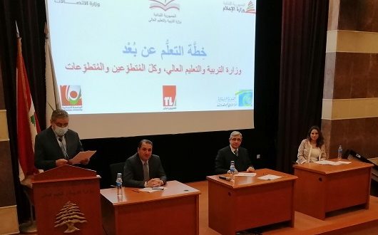 أطلق وزير التربية والتعليم العالي الدكتور طارق المجذوب ووزيرة الإعلام الدكتورة منال عبد الصمد ووزير الإتصالات الدكتور طلال حواط في مؤتمر صحافي مشترك ، تجربة التعلم عن بعد عبر البث التلفزيوني والمنصات الرقمية ، وشارك في المؤتمر أيضا كل من المدير العام للتربية الأستاذ فادي يرق ورئيسة المركز التربوي للبحوث والإنماء الدكتورة ندى عويجان ورئيس الجامعة اللبنانية الدكتور فؤاد أيوب ، في حضور ممثلين عن المنظمات الدولية ومنسق اتحاد المؤسسات التربوية الأب بطرس عازار وأعضاء من الإتحاد ، وكبار موظفي الوزارة والمركز التربوي ونقيب المعلمين ورؤساء روابط المعلمين وجمع من الإعلاميين .