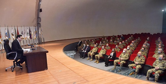 ثم توجّه الرئيس دياب إلى قاعة العماد نجيم. وألقى كلمة بحضور قادة الألوية والأفواج قال فيها: