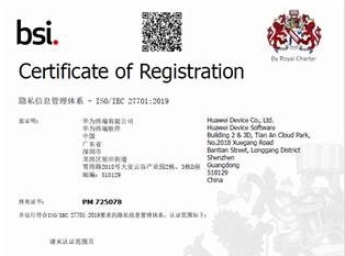 حصل برنامج منتج هواوي على شهادة ISO/IEC 27701 والتي تثبت أن منتج هواوي يفي بمعايير الخصوصية الدولية من حيث تصميم البرامج والبحث والتطوير والصيانة، بالإضافة إلى إدارة شؤون الموظفين، مما يحمي أمن وخصوصية المستهلكين.