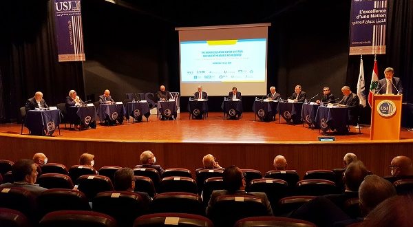عقد تجمّع لإحدى عشرة جامعة في لبنان مؤتمراً صحافياً، ظهر اليوم، في مسرح بيار أبو خاطر- جامعة القديس يوسف في بيروت، حرم العلوم الإنسانية، لمناقشة أوضاع قطاع التعليم العالي في لبنان، والصعوبات التي يواجهها والحلول والخطوات الواجب اتخاذها لإنقاذ هذا القطاع.