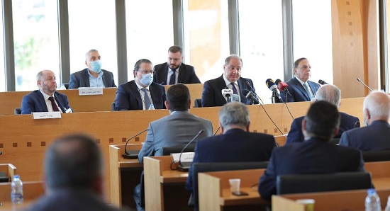 عقد اجتماع تشاوري وتشاركي في مقر المجلس الاقتصادي والاجتماعي حضره الى رئيس المجلس شارل عربيد رئيس الهيئات الاقتصادية الوزير محمد شقير ، رئيس الاتحاد العمالي العام بشاره الاسمر نقيب المقاولين مارون حلو نقيب اصحاب المطاعم والباتيسري طوني الر امي اصحاب السوبر ماركت نبيل فهد ونقيب مستوردي المواد الغذائية هاني بحصلي رئيس تجمع شركات مستوردي النفط في لبنان جورج فياض والسيد مارون شماس ونائب رئيس جمعية الصناعيين جورج نصراوي ونقيب مستوردي الادوية ممثلا بمحمد مروان الحكيم وعن جمعية تجار بيروت عدنان رمال ونائب رئيس المجلس سعد الدين حميدي صقر والمدير العام الدكتور محمد سيف الدين وعدد من رؤوساء ومقرري اللجان في المجلس وحشد من المهتمين .
