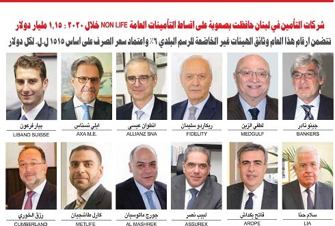 وقد بلغت حصة الشركات العشر الأولى 64,7 في المئة من مجموع الأقساط الذي بلغ 1,15 مليار دولار أميركي بنمو نسبته 2 في المئة.