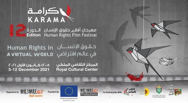ينطلق مهرجان كرامة لأفلام حقوق الإنسان في دورته الثانية عشرة تحت عنوان «حقوق الإنسان في عالم افتراضي» محاكياً ما فرضته آثار جائحة كوفيد 19 بالتحوّل إلى عالم افتراضي في كافة المجالات، كما فرض إعادة تعريف وترتيب أولويات حقوق الإنسان في ظل العصر الرقمي الذي نعيشه حالياً، ليقدم مجموعة من أبرز الأفلام الروائية والوثائقية والتحريكيّة العالمية والعربية والمحلية والتي تعالج هذا المفهوم.