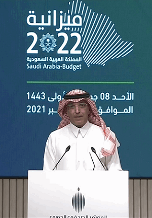 ولفت الجدعان إلى أن تقديرات الميزانية لعام 2022م تظهر أن إجمالي الإيرادات سيبلغ 1,045 مليارريال، بارتفاعنسبته12.4%عنالمُتوقع تحقيقه في عام2021م، فيما يقدر إجمالي النفقات بحوالي 955 مليار ريال، في حين يتوقع تحقيق فوائض بنحو 90 مليار ريال (أي ما نسبته 2.5% من الناتج المحلي الإجمالي)، مبيناً أن هذه الفوائض سيتم توجيهها لتعزيز الاحتياطيات الحكومية، ودعم الصناديق التنموية وصندوق الاستثمارات العامة، والنظر في إمكانية التعجيل في تنفيذ بعض البرامج والمشاريع الاستراتيجية ذات البعد الاقتصادي والاجتماعي، أو سداد جزء من الدين العام حسب ظروف السوق.