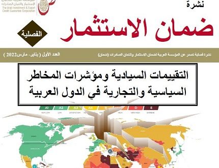 ودعت المؤسسة الجهات البحثية المتخصصة في الدول العربية لدراسة إمكانية التعاون فيما بينها لإصدار تصنيف سيادي وآخر لتقييم مخاطر الدول في دول المنطقة والعالم، على أن يأخذ في اعتباره تفادي الملاحظات التي تؤخذ على بعض التصنيفات الدولية. يذكر أن المؤسسة العربية لضمان الاستثمار وائتمان الصادرات “ضمان” تأسست عام 1974 ومقرها دولة الكويت، كمؤسسة متعددة الأطراف تضم في عضويتها جميع الدول العربية وأربع مؤسسات مالية عربية مشتركة، وتقدم خدمات تأمينية متخصصة ضد مخاطر الائتمان والمخاطر السياسية بهدف تسهيل تدفق الاستثمار الأجنبي المباشر إلى الدول العربية ودعم الصادرات والواردات العربية.