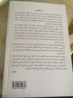 في مؤلفه الجديد هذا يقف عند مستجدات التجربة، وما تعرّض له مفهوم المجتمع المدني من نقاشات وآراء متباينة، مستعرضًا الأفكار المتقدمة في الشرق والغرب، وداعيًا إلى تجديد مؤسسات المجتمع المدني، ودراسة مخططات العمل فيها برؤى متجددة دائمًا.