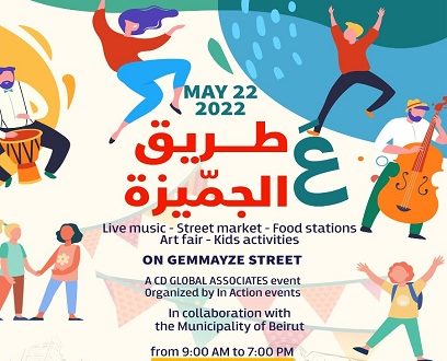 موعدنا مع “مهرجان عطريق الجميزة 2022” من الساعة التاسعة صباحا  لغاية الساعة السابعة مساءً في 22 أيار 2022 على طول شارع الجميزة. ضعوا الأقنعة الواقية وتعالوا زوروا معرضنا في المنطقة الأحبعلى قلبنا، الجميزة، حيث ستجدون كل أنواع المنتوجات والصناعات وبالأسعار المميزة.