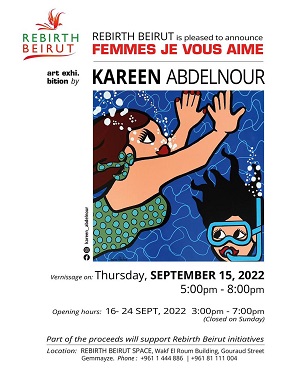 جمعية Rebirth Beirut تفتتح المعرض بتاريخ 15 أيلول الساعة الخامسة بعد الظهر لغاية الثامنة مساءً وتستقبل الزائرين لغاية 24 أيلول ضمناً بين الساعة 3:00 لغاية 7:00 مساءً في مقرّها الثقافي في منطقة الجميّزة شارع غورو.
