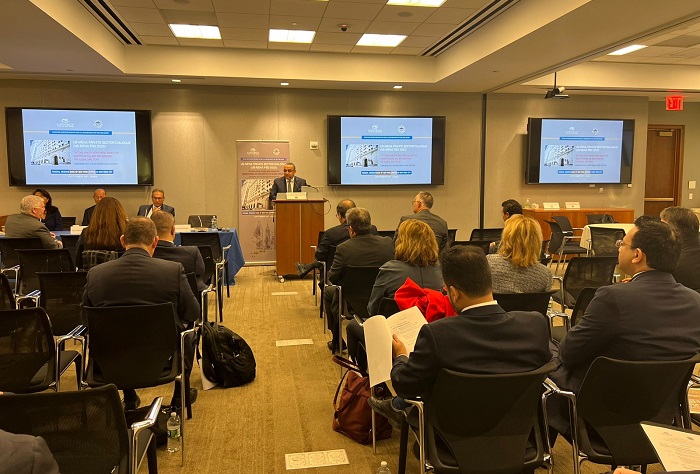 و في نيويورك اقام الاتحاد مؤتمره العام في ١٢ اكتوبر الحالي بالتعاون مع البنك الفدرالي الأميركي الذي أستضاف اعمال المؤتمر في مقره الرئيسي في نيويورك، حيث جرت لقاءات ثنائية مع المصارف الأميركية والهيئات التشريعية ، المؤتمر الذي شارك فيه كل من: مجلس الاحتياطي الفدرالي في واشنطن، ووزارة الخزانة الأميركية، وصندوق النقد والبنك الدوليين وخبراء من ” OFAC ” ومصارف أميركية مراسلة وخبراء من هيئات مالية رقابية دولية ، وكبرى شركات المحاماة في نيويورك وقيادات مصرفية عربية، يترأسهم رئيس الاتحاد الاستاذ محمد الاتربي و وفد من المصارف والمؤسسات المالية الأعضاء في الاتحاد ومجلس إدارته.” وذلك متزامنًا مع إجتماعات صندوق النقد والبنك الدوليين.