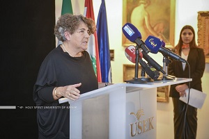 بدايةً، كانت كلمة افتتاحية لغيا افرام أشارت فيها إلى أنّ “هذا المعرض يسلّط الضوء، أولاً، على أهمية برنامج حفظ وترميم الملكية الثقافية والفن المقدس الذي بدأ في الجامعة منذ العام 2018 بهدف تعزيز الإرث الثقافي في بلدنا عبر إعداد مهنيين ذوي خبرة وفق المعايير الأوروبية، وثانيًا، على التعاون بين إيطاليا ولبنان في مجال الإرث الثقافي وأهمية إعطاء المرممين الشباب فرصةً حيث أظهروا من خلال هذه التجربة الدولية أنّ الترميم يمكن أن يكون أيضًا فرصةً للأجيال الشابة اللبنانية”.