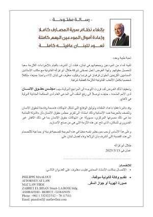 رسالة مفتوحة بإلغاء نظـام سرية المصـارف كامـلاً وإعادة أموال المودعين اليهم كاملـة تعـيد للبنـان عافيتـه كاملة