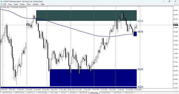 الرسم البياني لأسعار النفط على منصة MT4 من شركة XS.com
