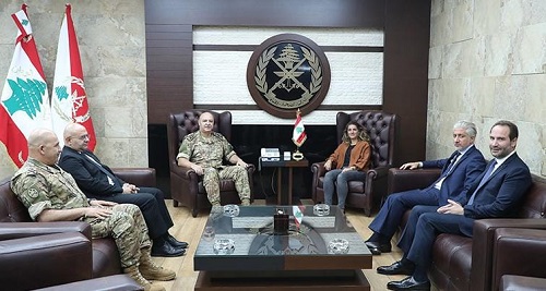 من لقاء يمنى الجميل، روجيه زكّار وشفيق أبي اللمع مع قائد الجيش العماد جوزاف عون حيث تم تقديم أحرّ التعازي بالضابطين الشهيدين على أثر تحطم طوافة للجيش في منطقة حمانا وقد تم البحث بالأوضاع العامة في البلاد.