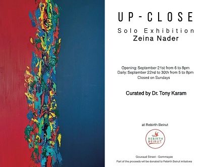 أعلنت جمعية Rebirth Beirut عن معرضها الفردي الجديد للفنانة زينة نادر بعنوان “Up-Close” وذلك في مقرّ الجمعية الثقافي الكائن في منطقة الجميّزة – شارع غورو.