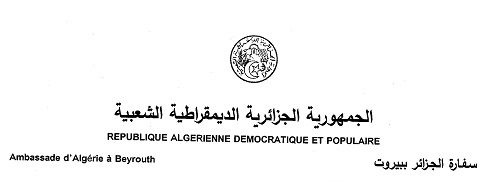 صدر عن سفارة الجمهورية الجزائرية الديمقراطية الشعبية في لبنان ، البيان التالي: