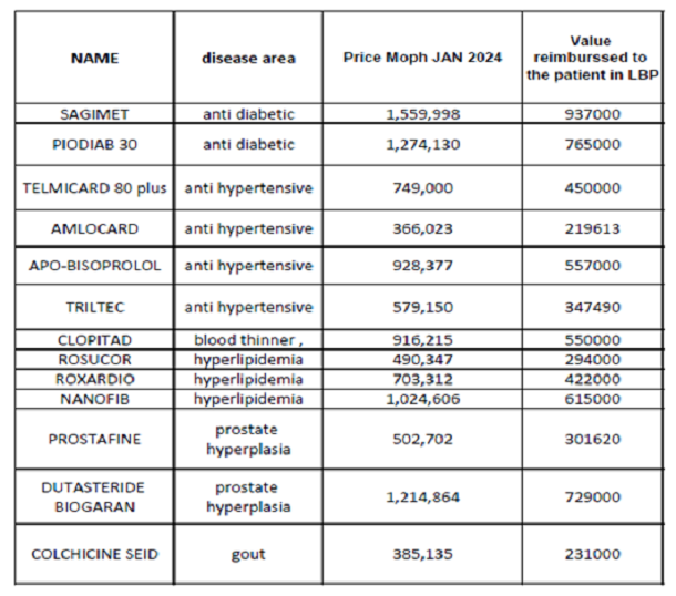 ندرج أدناه جدولاً من 15 مثالاً عن الأدوية المزمنة وفق أسعار وزارة الصحّة العامّة وتليها قيمة مساهمة الصندوق فيها: