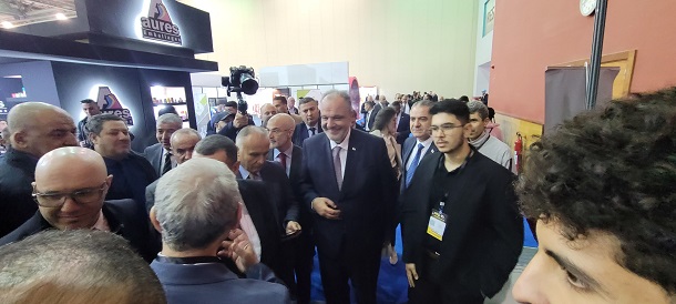واصل وزير الصناعــة في حكومة تصريف الأعمال النائب جورج بوشكيـــان زيارته الرسمية الى الجزائر، وشارك والسفير اللبناني في الجزائر الدكتور محمد حسن في إفتتـاح الطبعة السادسة للصالون الدولي للاستثمار في الصناعة والطاقة والبنـاء واللوجيستيك والتصدير الذي تستضيفــه مدينة وهــران وتستمر أعماله حتى السابع من آذار الجاري. وتفقّد الجناح اللبناني الذي ضمّ اثنتي عشرة مؤسسة صناعية زراعية من اثنتي عشرة قرية وبلدة من مختلف المحافظات اللبنانية. وأكد أن هذه المبادرة تشجيعية وتحفيزية ساهمت وزارة الصناعة بها بالتعاون والتنسيق مع الجهة المنظمة للمعرض والسفارة اللبنانية. وأكد أن المشاركة في المعارض العربية والدولية هي الوسيلة الأكثر فاعلية للتعريف بالمنتج اللبناني وبجودته ونوعيته العالية، الأمر الذي يؤدّي إلى زيادة التصدير وفتح أسواق جديدة. وشكر بوشكيان المسؤولين الجزائريين على حسن الاستقبال الذي لقيه، وعلى الاهتمام بالعارضين اللبنانيين، مشيداً بالعلاقات الوثيقة بين لبنان والجزائر على مختلف الصعد. واعتبر المعرض “فرصة استثنائيـة لاكتشاف ما لدى الآخرين، ولتبادل الخبرات والشراكة واقامة مشاريع استثمارية مباشرة بين لبنـان والجزائر. كما أن المعرض حدث إقتصادي هـام ومميز يجمع الطاقات والقطاعات العديدة ذات النشاطات الحيوية والمتكاملة.”