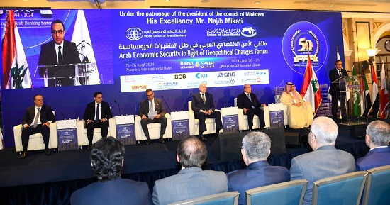 وتابع: “يعقد منتدانا اليوم بحضور هذا الجمع الكبير، من القادة السياسيين، والديبلوماسيين، والمصرفيين، والماليين، والخبراء، والاكاديميين، الذين يكرسون جهودهم لتحقيق هدف مشترك واحد – الأمن الاقتصادي والازدهار في دولنا العربية. وإذ نجتمع في هذا اللقاء البالغ الأهمية، للإضاءة على التحديات التي نواجهها وهي متعددة الأوجه، بدءا من التوترات الجيوسياسية الاقليمية والدولية، إلى الفوارق الاجتماعية والاقتصادية، ومن التدهور البيئي إلى المخاطر السيبرانية”.