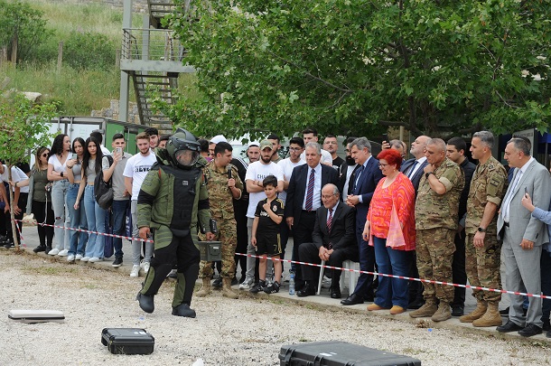 ثم جال رئيس الجامعة ومعالي وزير التربية والتعليم العالي على النشاطات بمرافقة الضيوف الكرام حيث قدّم المركز اللبناني للأعمال المتعلقة بالألغام في الجيش اللبناني عرضًا ميدانيا حول كيفية الكشف عن الألغام وتفكيكها من خلال الكلاب المدربة والآلات الحديثة المستعملة للكشف عن الألغام.