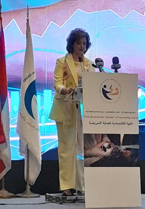 ممثل منظمة الصحة العالمية، في لبنان الدكتور عبد الناصر أبو بكر تناول أهمية الناحية الإقتصادية للعناية التمريضية وإنعكاسها على القطاع الصحي والعائدات الإيجابية التي تؤمنها علماً بأن هذه القوة عملت عليها منظمة الصحة العالمية من ضمن إستراتيجية تهدف الى تخفيض الكلفة الإستشفائية في كل القطاع الصحي حول العالم.