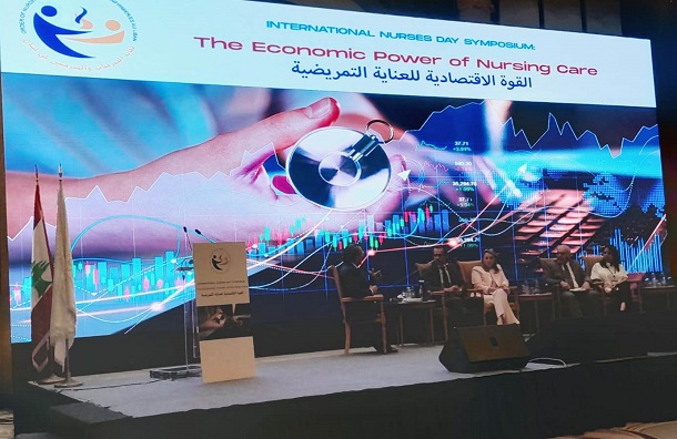 بمناسبة يوم التمريض العالمي عقدت نقابة الممرضات والممرضين في لبنان ندوة علمية تحت عنوان “القوة الإقتصادية للعناية التمريضية” برعاية وحضور معالي وزير الصحة العامة د. فراس الأبيض وممثل منظمة الصحة العالمية د. عبد النصير أبو بكر والنائب الدكتور فادي علامة وممثل عن وزير الصناعة وممثلين عن الأجهزة الأمنية والعسكرية ونقيب الأطباء د. يوسف بخاش وممثل عن نقابة المحامين وعدد من نقباء القطاع الصحي والمدراء والعمداء ونقباء التمريض السابقين وعدد كبير من الممرضات والممرضين وقد قدمت الندوة الإعلامية نوال ليشع عبود.
