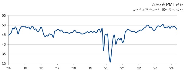 وانخفض مؤشر ®BLOM Lebanon PMI من 48.9 نقطة في نيسان 2024 إلى 47.9 نقطة في أيار 2024 وهي القراءة الأدنى منذ بداية العام 2023. وبوجه عام، أشارت قراءة المؤشر الرئيسي إلى تراجع سريع في النشاط الاقتصادي لشركات القطاع الخاص اللبناني وبوتيرة هي الأكثر حدة في عام ونصف تقريباً.
