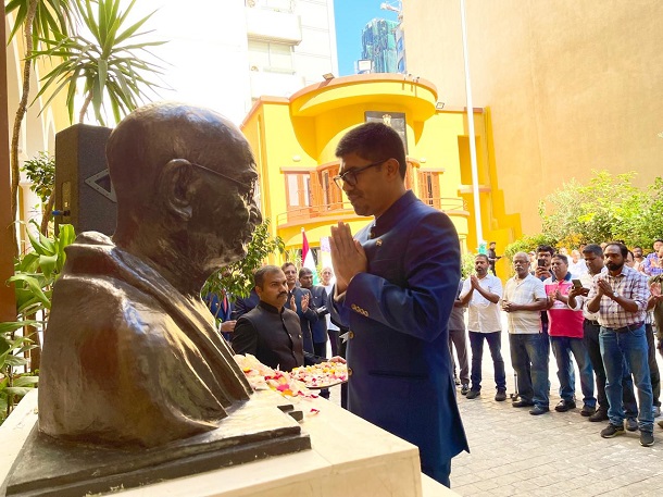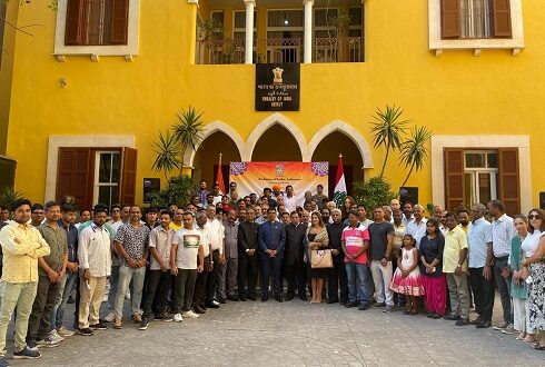 H.E. Ambassador Md. Noor Rahman Sheikh started the event by offering floral tributes to the statue of Mahatma Gandhi – Father of the Nation and then hoisted the Indian National Flag. Thereafter, Ambassador read out the Address to the Nation by Hon’ble President of India Mrs. Droupadi Murmu. In his address, he also requested all Indian Diaspora members to remain vigilant and in touch with the Embassy due to the recent developments in the region. Patriotic songs were sung by Officials of the Indian Embassy, Gopal Prasad, Deepesh Hoskere and a poem recitation by Samir Khawas. The ceremony was attended by more than 180 Indian community members, members of the Indian Battalion, Lebanese friends of India and Embassy staff members. The event was concluded by serving of light refreshments to the gathering.