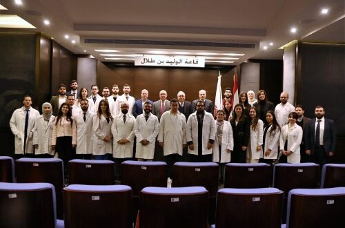 اضاف مخاطبًا الأطباء الجدد تنتقلون اليوم من مقاعد الدراسة والتدريب المهني الى المستشفيات والعيادات كأطباء جدد وأعتقد أن من بينكم من شارك في معالجة الجرحى في أقسام الطوارىء وأعتقد انها بداية عمل انساني منصوص عنه في قانون الآداب الطبية. فالنقابة ستواكبكم حتى النهاية وطيلة أيام حياتكم حتى بعد التقاعد.